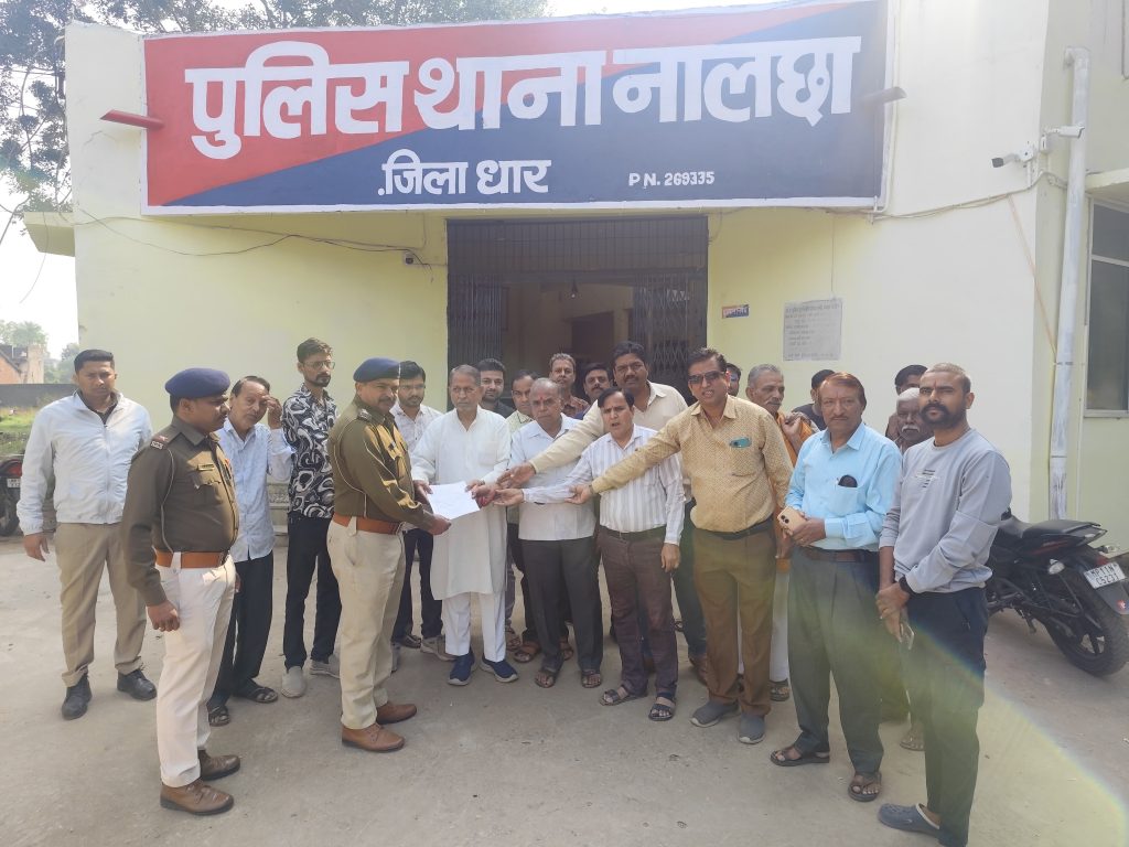जिसमें समाज अध्यक्ष मोहनलाल शर्मा एवं परशुराम युवा मंच के अध्यक्ष दीपक शर्मा के नेतृत्व में पुलिस थाने नालछा पर एकत्रित हुए।