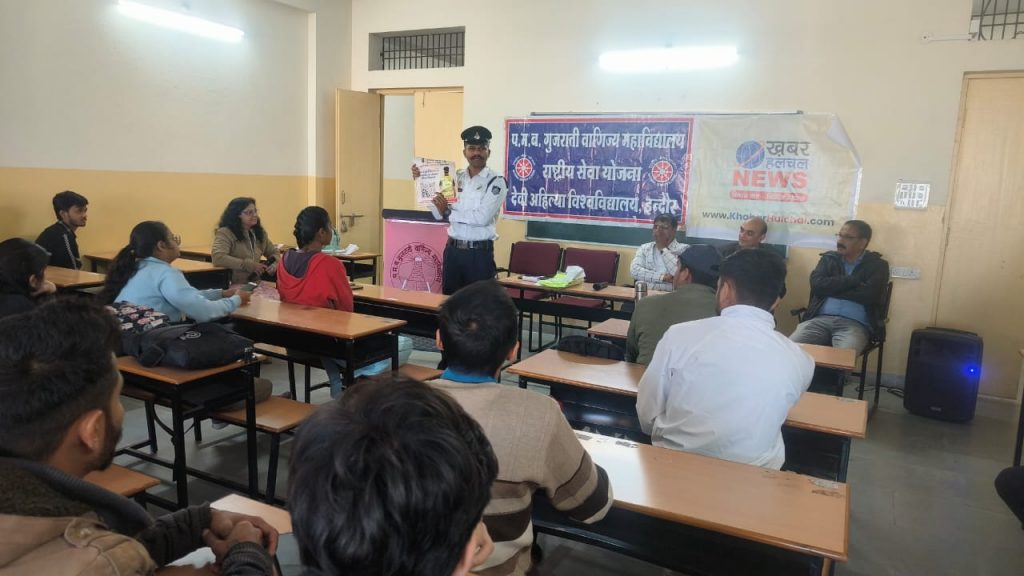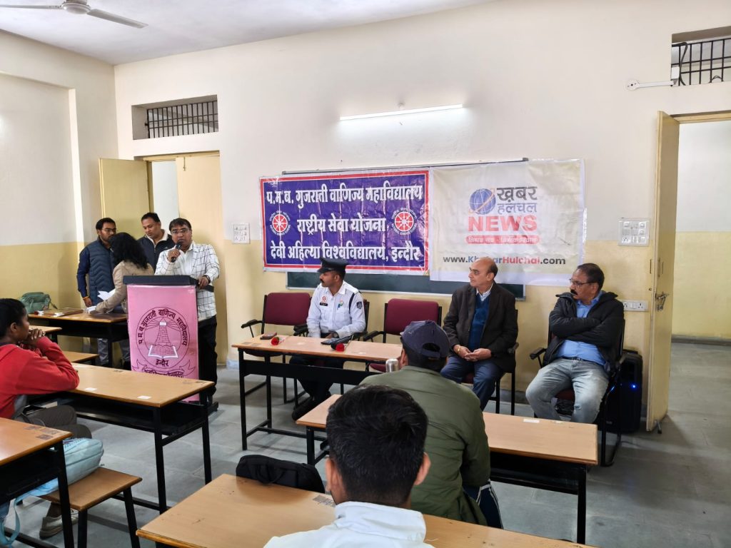 इन्दौर। शहर की यातायात समस्याओं से छात्रों को परिचित करवाते हुए यातायात पुलिस व ख़बर हलचल न्यूज़ द्वारा प.म. ब. गुजराती वाणिज्य महाविद्यालय छात्र संवाद का आयोजन किया गया।