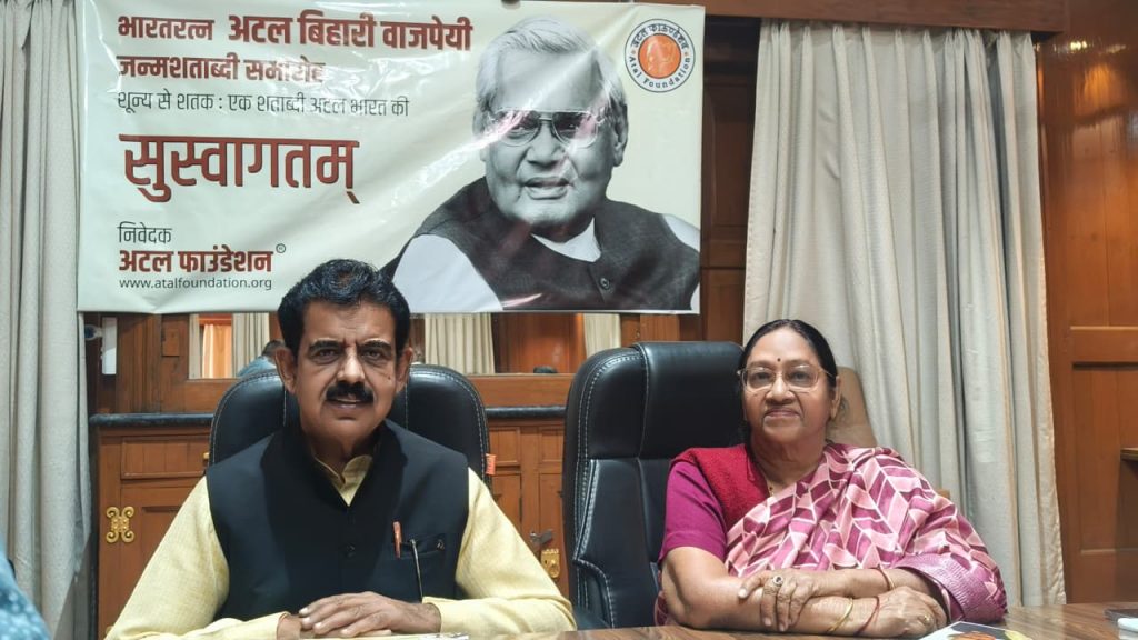 यह जानकारी आज यहां अटल फाउंडेशन की ओर से आयोजित पत्रकार वार्ता में सांसद शंकर लालवानी एवं फाउंडेशन की अध्यक्ष माला वाजपेयी तिवारी ने दी। उन्होंने बताया कि स्वर्गीय अटल बिहारी वाजपेयी के 100 वें जन्म जयंती वर्ष के मौके पर पूरे वर्ष देश भर में विभिन्न कार्यक्रमों का आयोजन किया गया। इसी कड़ी में अब वर्ष समाप्त होने से पूर्व 21 दिसंबर को डेली कॉलेज के धीरूभाई अंबानी सभागृह में एक भव्य कार्यक्रम का आयोजन किया गया है। शून्य से शतक के रूप में इस कार्यक्रम का आयोजन किया जा रहा है। इस कार्यक्रम में भाग लेने के लिए देश के उपराष्ट्रपति सी पी राधाकृष्णन, मध्य प्रदेश के राज्यपाल मंगू भाई पटेल और प्रदेश के मुख्यमंत्री डॉ मोहन यादव इंदौर आ रहे हैं।