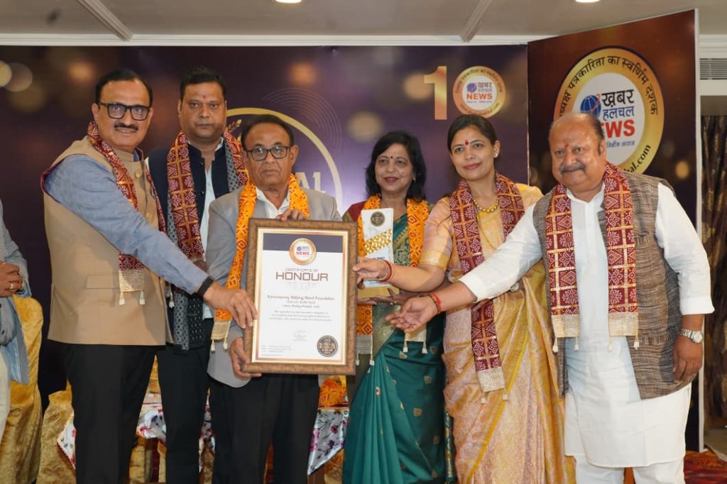 इंदौर। समाज को प्रेरित करने वाले चयनित व्यक्तित्व में शहर की सक्रिय समाजसेवी संस्था करुणामय हेल्पिंग हैंड फ़ाउंडेशन को रविवार को ख़बर हलचल न्यूज़ द्वारा नेशनल ब्रिलियन्स अवॉर्ड 2025 से सम्मानित किया गया। यह सम्मान संस्था के अध्यक्ष डॉ. सुधीर तिवारी व अर्चना तिवारी ने ग्रहण किया। कार्यक्रम में इंदौर के लोकप्रिय विधायक रमेश मेंदोला, सांसद शंकर लालवानी, नगर भाजपा अध्यक्ष सुमित मिश्रा, पद्मश्री कालूराम बामनिया, इंदौर प्रेस क्लब के अध्यक्ष दीपक कर्दम, लेखक एवं पूर्व मुख्यमंत्री के विशेष कर्त्तव्यस्त अधिकारी रहे प्रवीण कक्कड़, नगर भाजपा उपाध्यक्ष दीप्ति सिंह हाड़ा एवं प्रेस क्लब के महासचिव प्रदीप जोशी एवं सम्पादक डॉ. अर्पण जैन ‘अविचल’ बतौर अतिथि उपस्थित रहे।