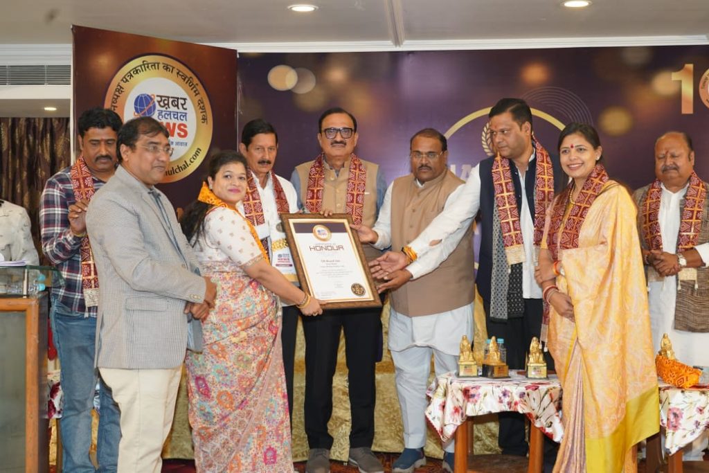 इंदौर। देश, प्रान्त और समाज को प्रेरित करने वाले चयनित व्यक्तित्व में इंदौर के सीए आनंद जैन को रविवार को ख़बर हलचल न्यूज़ द्वारा नेशनल ब्रिलियन्स अवॉर्ड 2025 से सम्मानित किया गया। यह सम्मान उनकी धर्मपत्नी निविया जैन ने ग्रहण किया। कार्यक्रम में इंदौर के लोकप्रिय विधायक रमेश मेंदोला, सांसद शंकर लालवानी, नगर भाजपा अध्यक्ष सुमित मिश्रा, पद्मश्री कालूराम बामनिया, इंदौर प्रेस क्लब के अध्यक्ष दीपक कर्दम, लेखक एवं पूर्व मुख्यमंत्री के विशेष कर्त्तव्यस्त अधिकारी रहे प्रवीण कक्कड़, नगर भाजपा उपाध्यक्ष दीप्ति सिंह हाड़ा एवं प्रेस क्लब के महासचिव प्रदीप जोशी एवं सम्पादक डॉ. अर्पण जैन ‘अविचल’ बतौर अतिथि उपस्थित रहे।