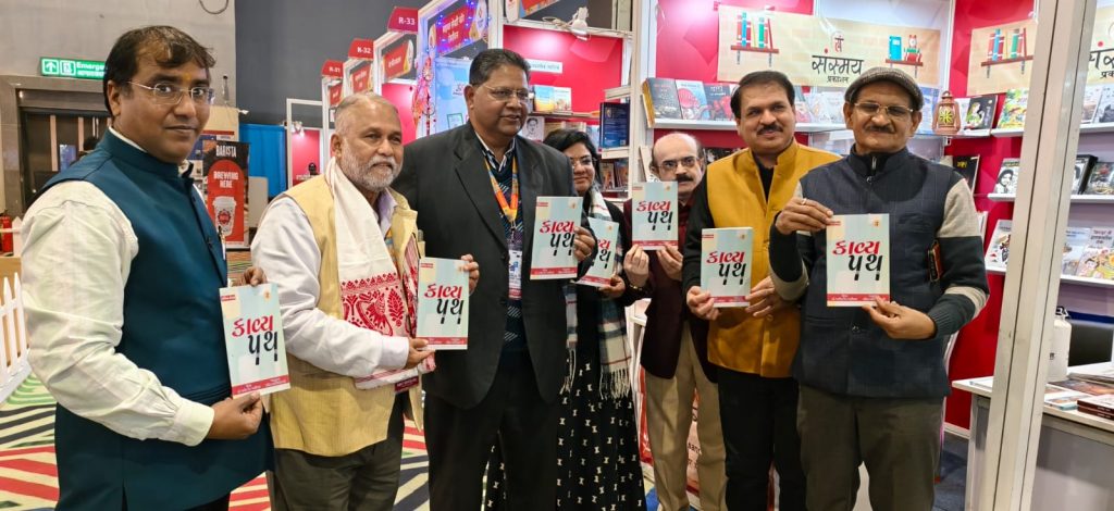 नई दिल्ली। भारत मण्डपम में आयोजित 53वें विश्व पुस्तक मेले में हॉल 2 में संस्मय प्रकाशन के स्टॉल R-36 पर मातृभाषा उन्नयन संस्थान के राष्ट्रीय अध्यक्ष डॉ. अर्पण जैन ‘अविचल’ की पुस्तक काव्य पथ का गुजराती अनुवाद ‘કાવ્ય પથ’ का लोकार्पण राष्ट्रीय पुस्तक न्यास के अध्यक्ष प्रो. मिलिंद मराठे ने किया। साथ में, सुप्रसिद्ध व्यंग्यकार सुभाष चंदर, डॉ. लालित्य ललित, प्रो. हरीश अरोड़ा एवं संस्मय की निदेशक भावना शर्मा मौजूद रहे।